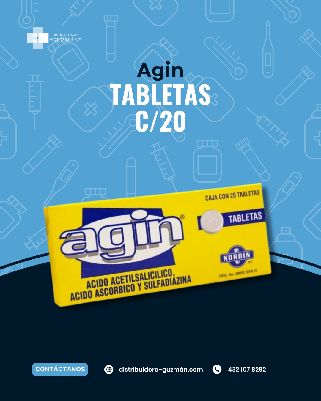 En Distribuidora Guzmán, manejamos Agin C 20 tabletas, una opción de farmacia reconocida por su enfoque integral para molestias asociadas a procesos inflamatorios en garganta (faringe), boca u oídos, ayudando también en el manejo de fiebre y dolor según indicación. Uso responsable (mensaje profesional):