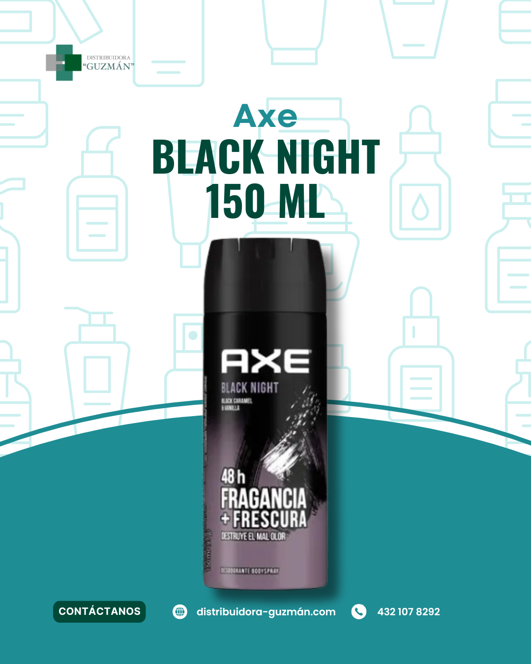 **Axe Black Night** es un producto de **fragancias** ideal para rotación de anaquel en **tiendas, farmacias y abarrotes**. En **Distribuidora Guzmán** lo ofrecemos para **mayoreo en Guanajuato**, con enfoque en surtido constante.