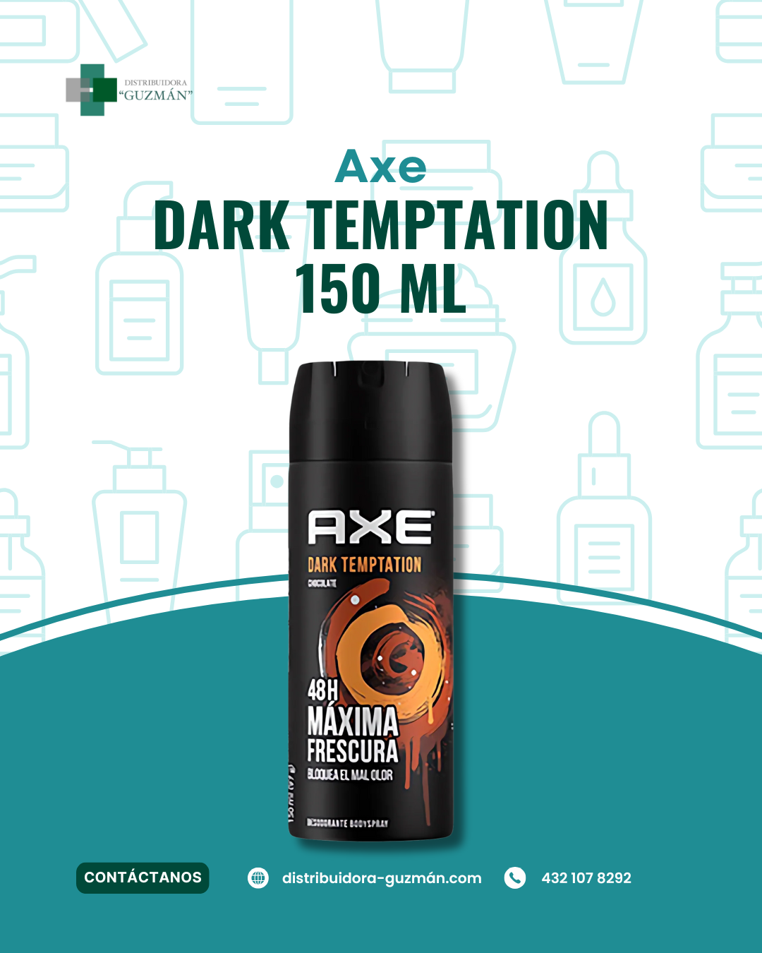 **Axe Dark Temptation** es un producto de **fragancias** ideal para rotación de anaquel en **tiendas, farmacias y abarrotes**. En **Distribuidora Guzmán** lo ofrecemos para **mayoreo en Guanajuato**, con enfoque en surtido constante.