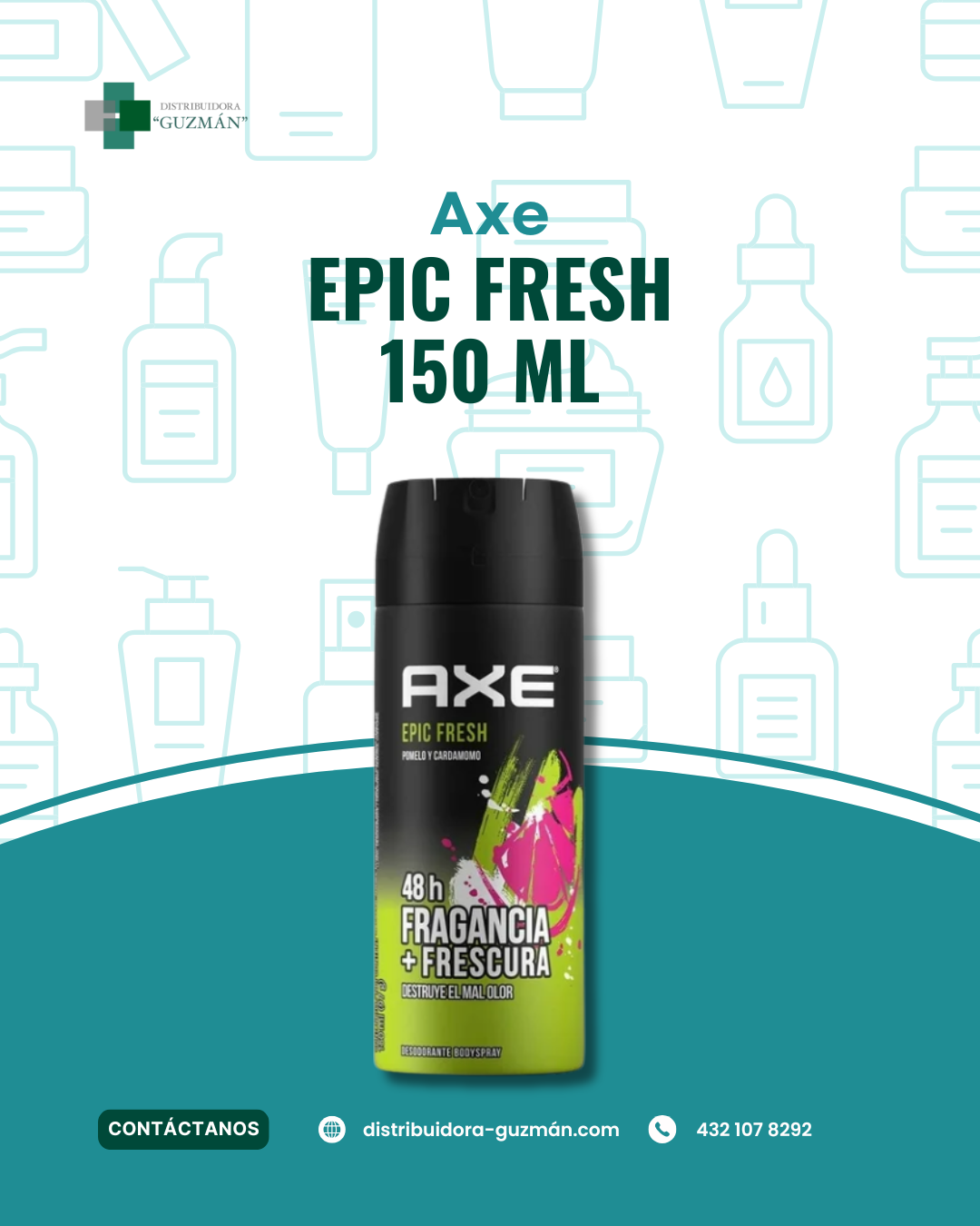 **Axe Epic Fresh** es un producto de **fragancias** ideal para rotación de anaquel en **tiendas, farmacias y abarrotes**. En **Distribuidora Guzmán** lo ofrecemos para **mayoreo en Guanajuato**, con enfoque en surtido constante.