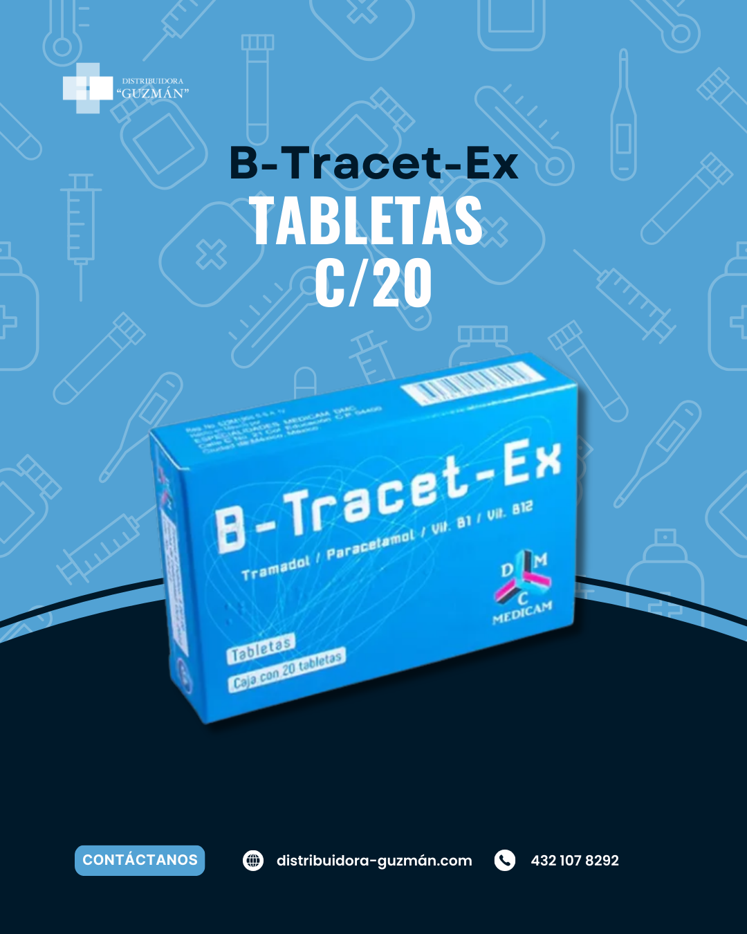 **B-Tracet-Ex C/20tab** es un **producto de farmacia** en **tabletas**, utilizado comúnmente para uso conforme a indicación. **Presentación / referencia:** C/20tab.
