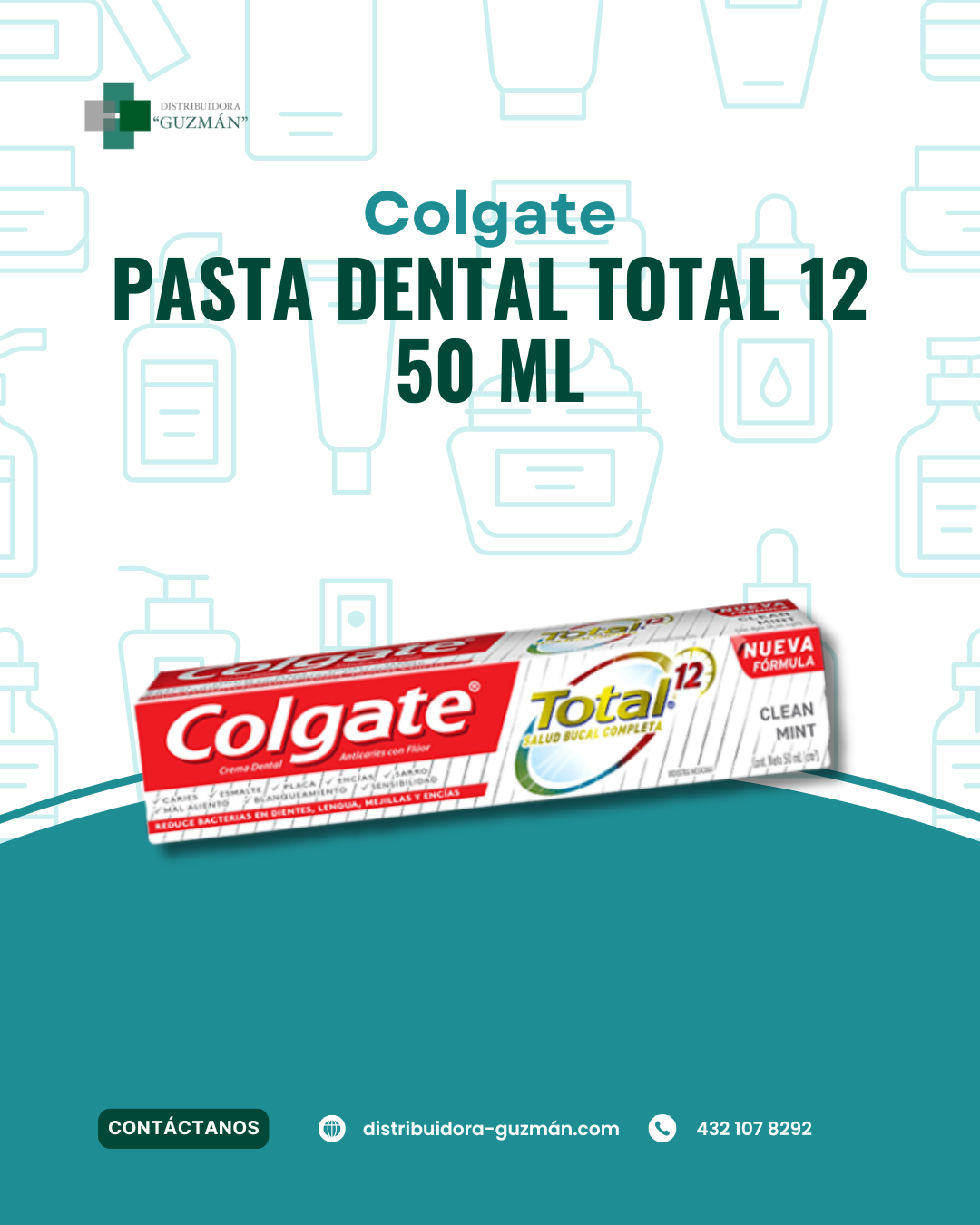 **Disponibilidad en Guanajuato:** Solicita **Colgate Total 12 50ml** con **Distribuidora Guzmán** y arma tu surtido de alta rotación.