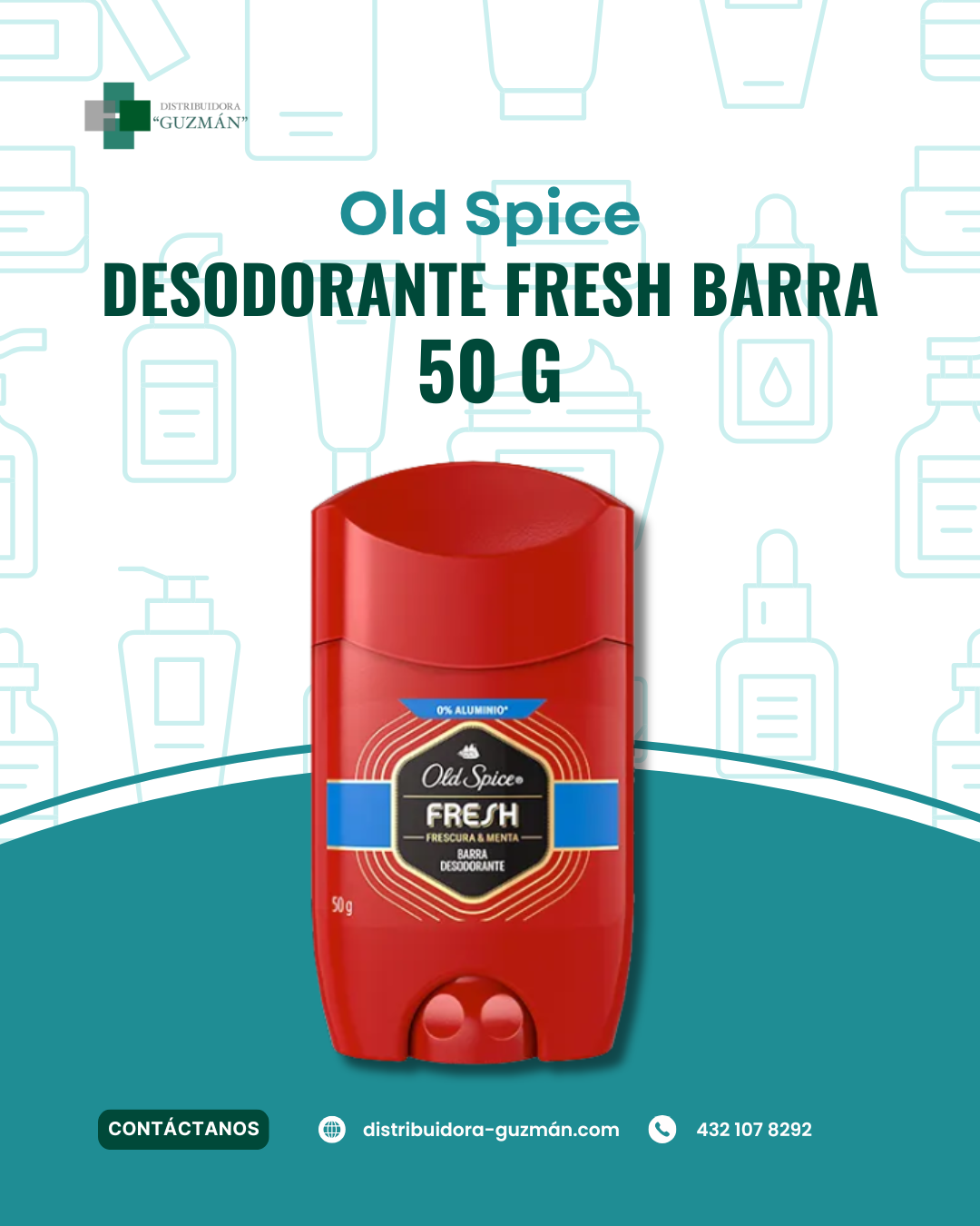 **Old Spice Fresh Barra** es un producto de **desodorantes** ideal para rotación de anaquel en **tiendas, farmacias y abarrotes**. En **Distribuidora Guzmán** lo ofrecemos para **mayoreo en Guanajuato**, con enfoque en surtido constante.