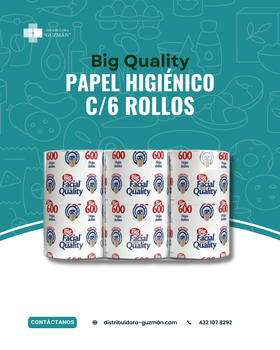 Papel Quality C/6 es un producto de calidad para el hogar. Presentación: C/6. Disponible con Distribuidora Guzmán para surtido de misceláneas, tiendas de abarrotes y autoservicios en Guanajuato.