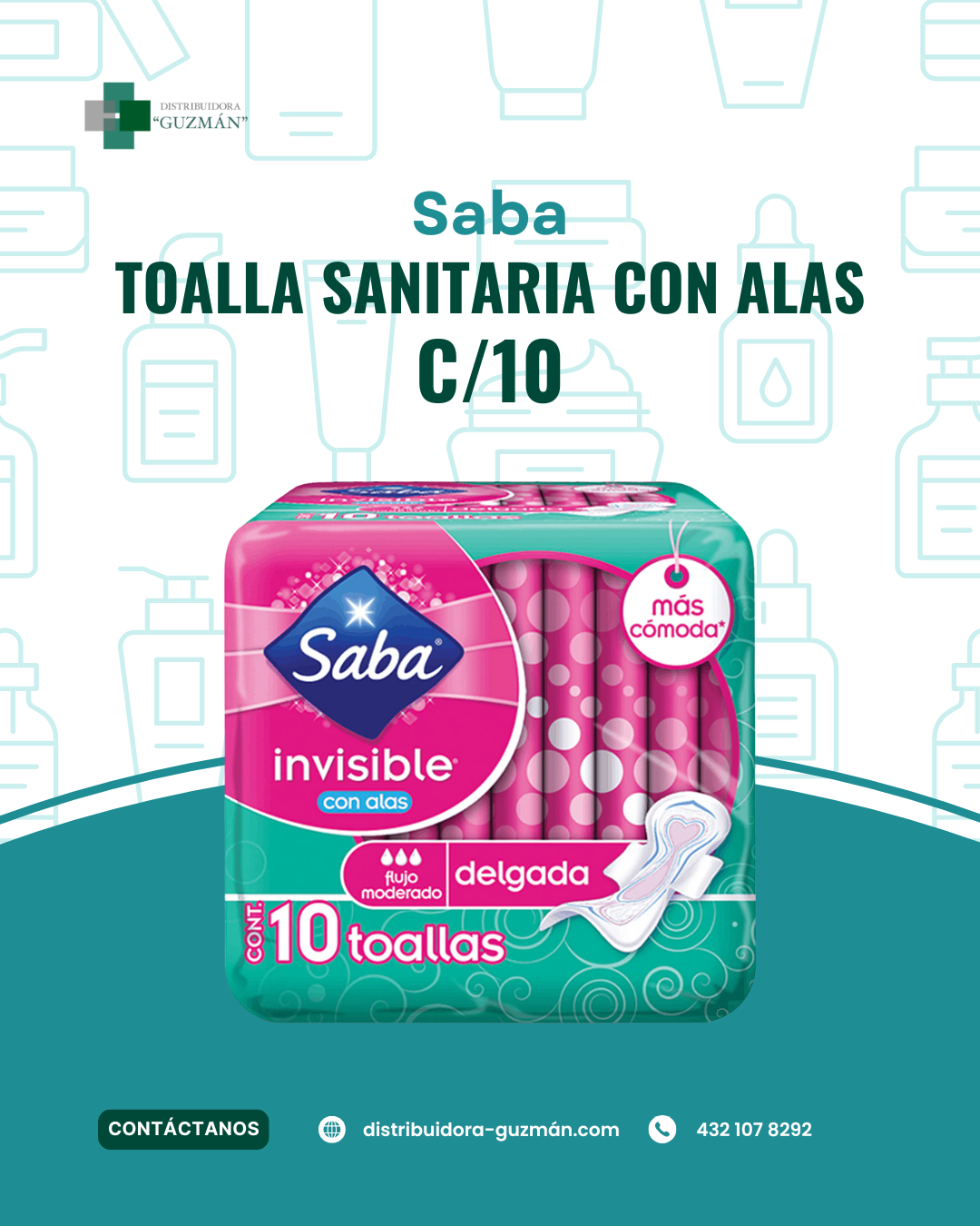 **Saba Invisible con Alas** es un producto de **higiene femenina** ideal para rotación de anaquel en **tiendas, farmacias y abarrotes**. En **Distribuidora Guzmán** lo ofrecemos para **mayoreo en Guanajuato**, con enfoque en surtido constante.