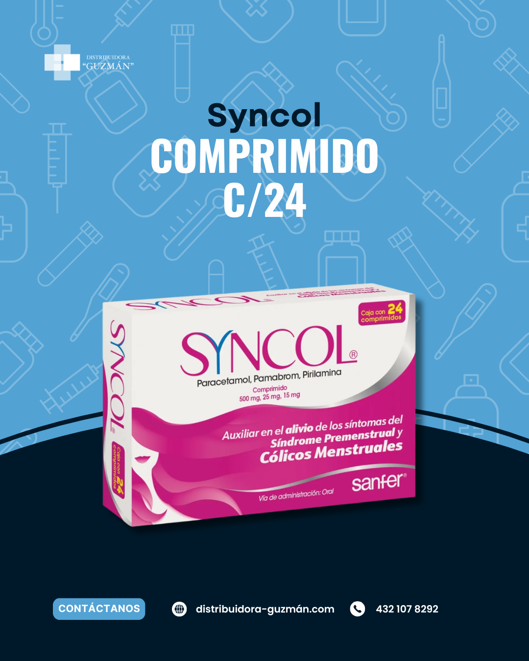 **Syncol c/24** es un **analgésico/antipirético** en **presentación farmacéutica**, utilizado comúnmente para alivio temporal de dolor y fiebre.