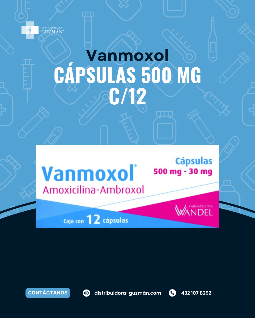 Vanmoxol C/12cap es un antibiótico de prescripción en cápsulas para uso bajo indicación médica. Disponible con Distribuidora Guzmán en Guanajuato. Venta y uso bajo indicación médica. Evita la automedicación.